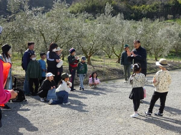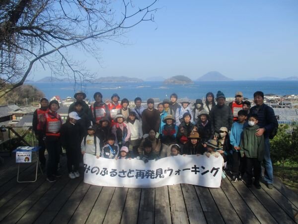 3月1日(日)第15回みのふるさと再発見ウォーキング(約5km)を開催しました。参加者はボランティア含め約90名でした。スタート場所の津嶋神社に集合し、2班に分かれ、「ももの会」による津嶋神社に伝わる昔ばなしのあと、県内唯一現存する「多度津藩家老屋敷 林求馬邸」へ。多度津町文化財保存会の皆さんから丁寧な説明をききました。次にオリーブオイルの工場「蒼のダイヤ」を訪れ、見学と説明を受けました。その後、白方・見立プロジェクトとして地域活性化を図る一環で開墾された「見立里山テラス」に立ち寄りました。休憩所として見晴らしの良い場所にデッキが設置された素敵な場所で、有志の皆さんによる淹れたてのコーヒー&ジュースのお接待という、嬉しいサプライズをうけ、ホッと一息つきました。ゴール地の久保谷自治会場では、食改三野支部の皆さんが作ってくれた美味しい芋炊きをいただきました。