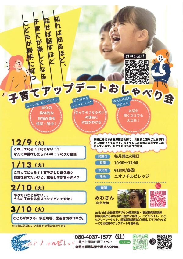 【ニオノチルビレッジ】子育てアップデートおしゃべり会について(12/9~3/10) 2025年11月28日 | お知らせ ニオノチルビレッジにて、「子育てアップデートおしゃべり会」を開催します。ご興味のある方は、是非ご参加ください。詳しくは、下記チラシをご覧ください。 facebook twitter line 最近の記事 【ニオノチルビレッジ】子育てアップデートおしゃべり会について(12/9~3/10) 【NPO法人光かがやく絵顔の種】イベント中止について(11/28) 2026年度カゴメみらいやさい財団助成事業について ファミリーマート&むすびえ 2025年度 こども食堂スタート応援助成プログラム冬期スタートプラン募集について 公益社団法人セカンドハンド 2025年度子ども食堂助成金の募集について キューピーみらいたまご財団「2026年度 第Ⅰ期 助成事業募集」について ツルハグループ「こども食堂ゆたかさ基金」2026年度春期助成 募集開始について 令和7年度 赤い羽根「篠原欣子記念財団 こども食堂応援プログラム」香川県助成団体募集 <ろうきん>働く人と子どもの明日を応援プロジェクトについて 『こどもの未来応援基金』令和8年度未来応援ネットワーク事業 募集のお知らせ/こども家庭庁 バックナンバー 2025年 2024年 2023年 2022年 2021年 2020年 カテゴリー お知らせ イベント・交流会 助成金 一覧に戻る 過去の記事 »